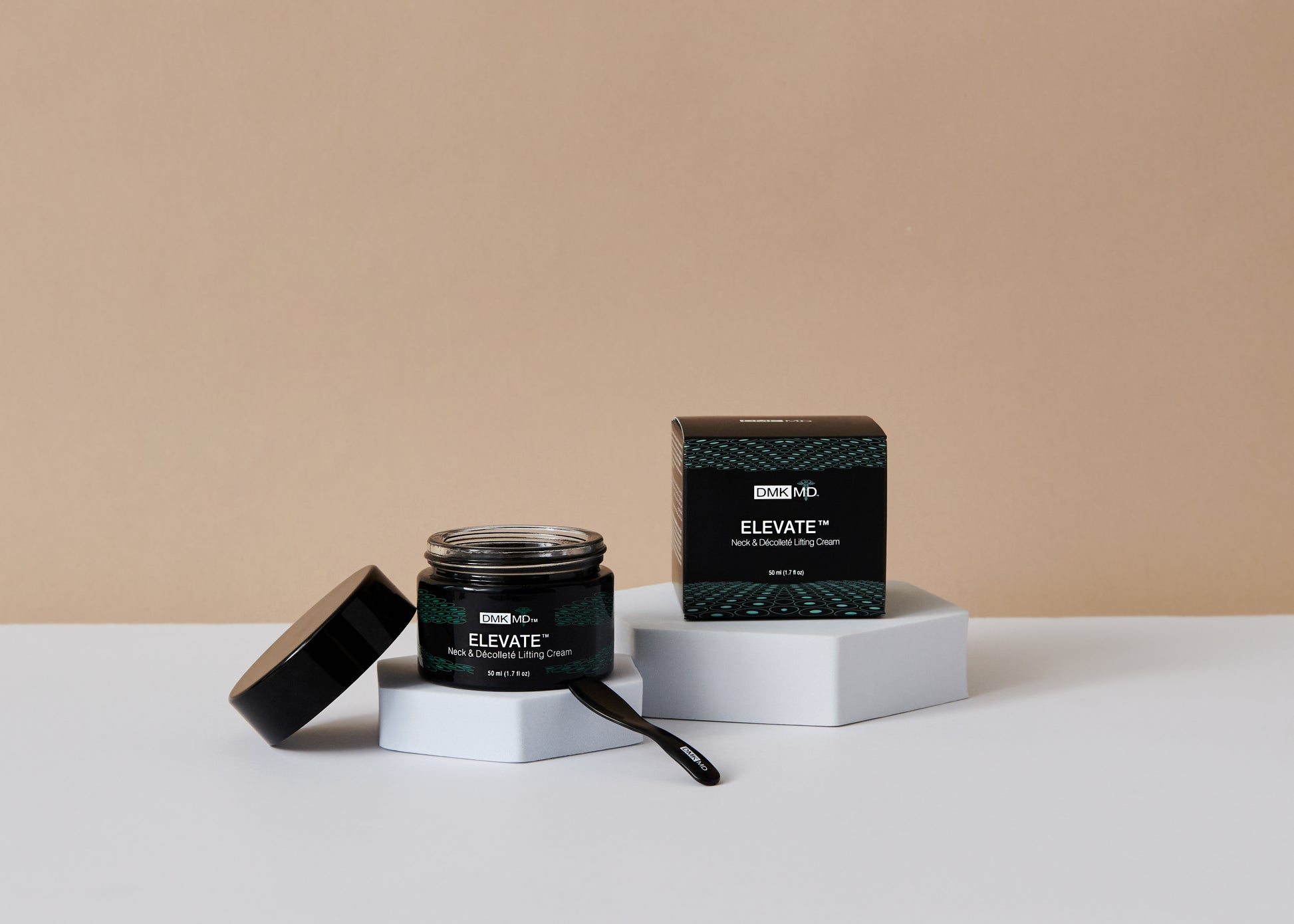 Life may sometimes get you down, but there is no need to allow age and gravity to have the same effect on your neck and decollete. DMK MD Elevate™ cream’s revitalizing bio-energy ingredients and warming thermogenic effect lift and tighten the neck and decollate tissues quickly. Elevate can lift skin in the neck and décolleté area. Other effects include increased collagen production, increased skin density, and balanced hydration levels. With continued use, the improvements become lasting. Size: 50ml (1.7 fl oz)