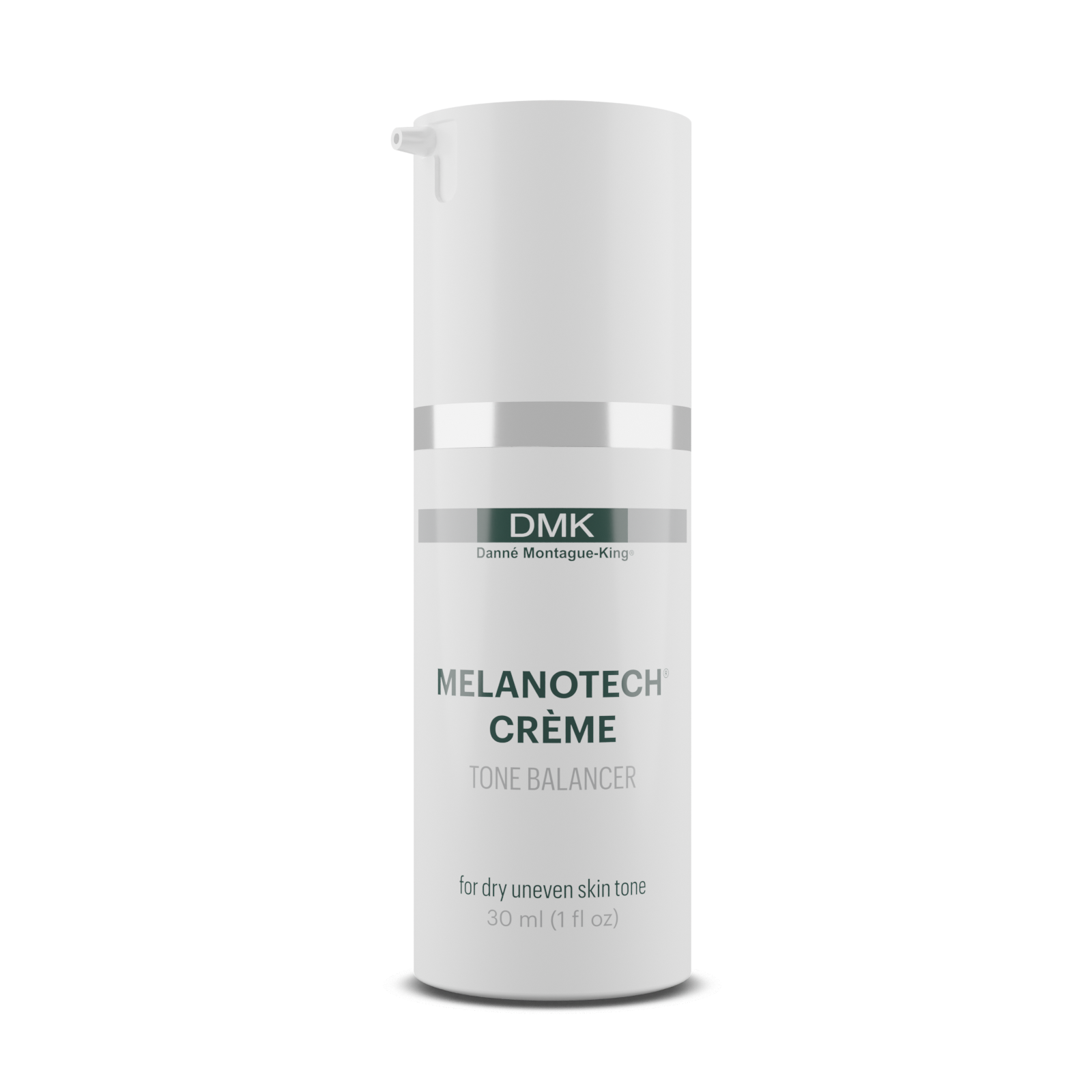 - Dispense 2–3 pumps of Melanotech Créme and dab onto the face, neck, and décolleté.