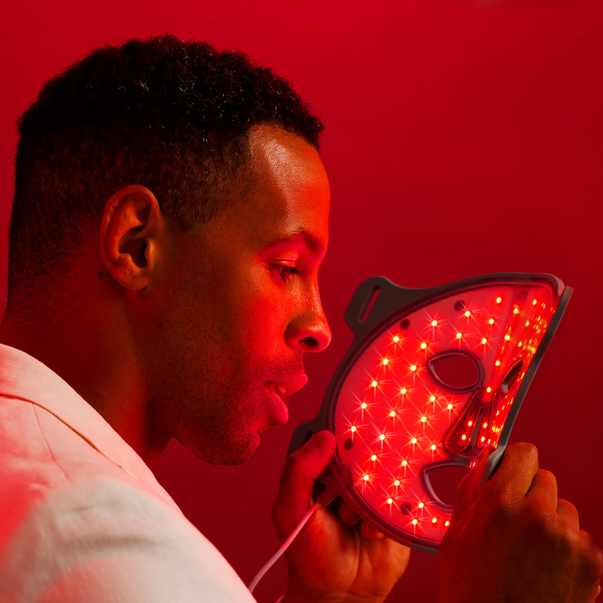 FDA-cleared, dermatologist-recommended red light therapy device with clinically proven results for men's skin rejuvenation.