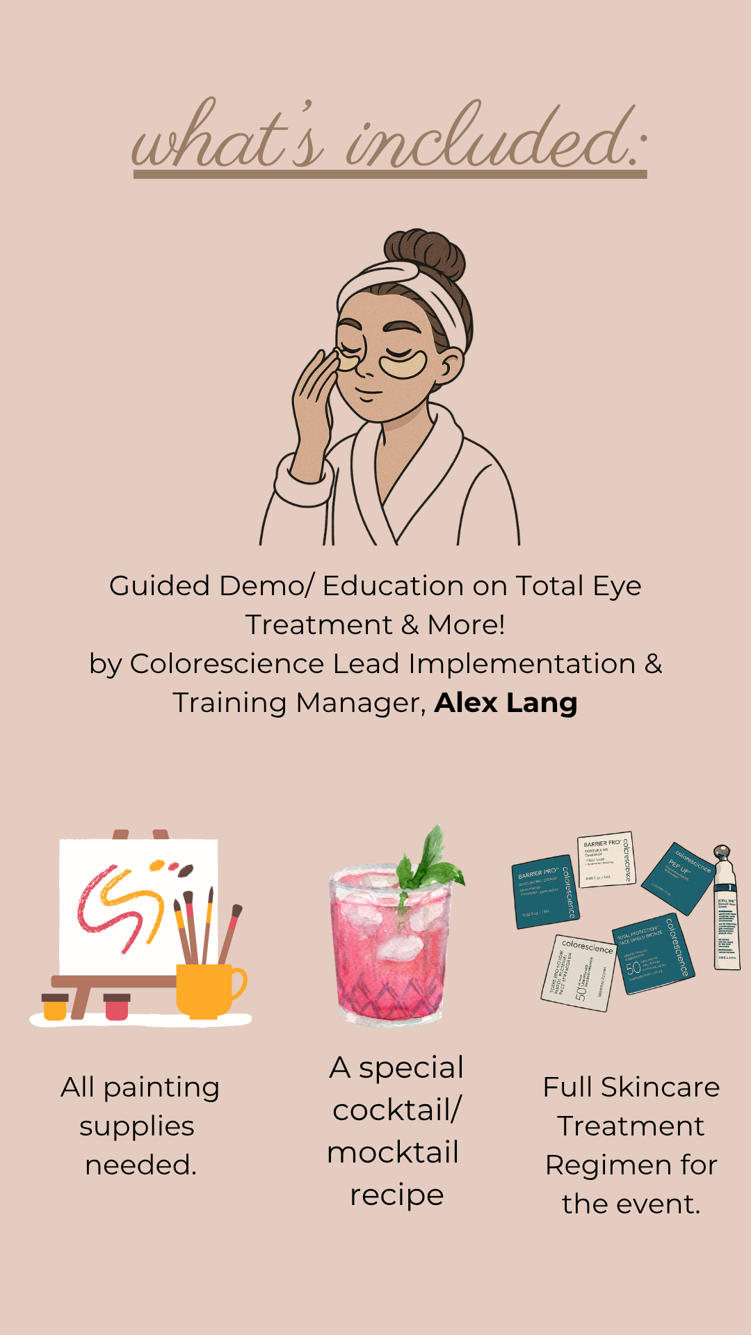 ☀️ A quick, exclusive walkthrough of our favorite eye treatments and sunscreens — so you can sip and glow, doing a mini-treatment on yourself while painting.