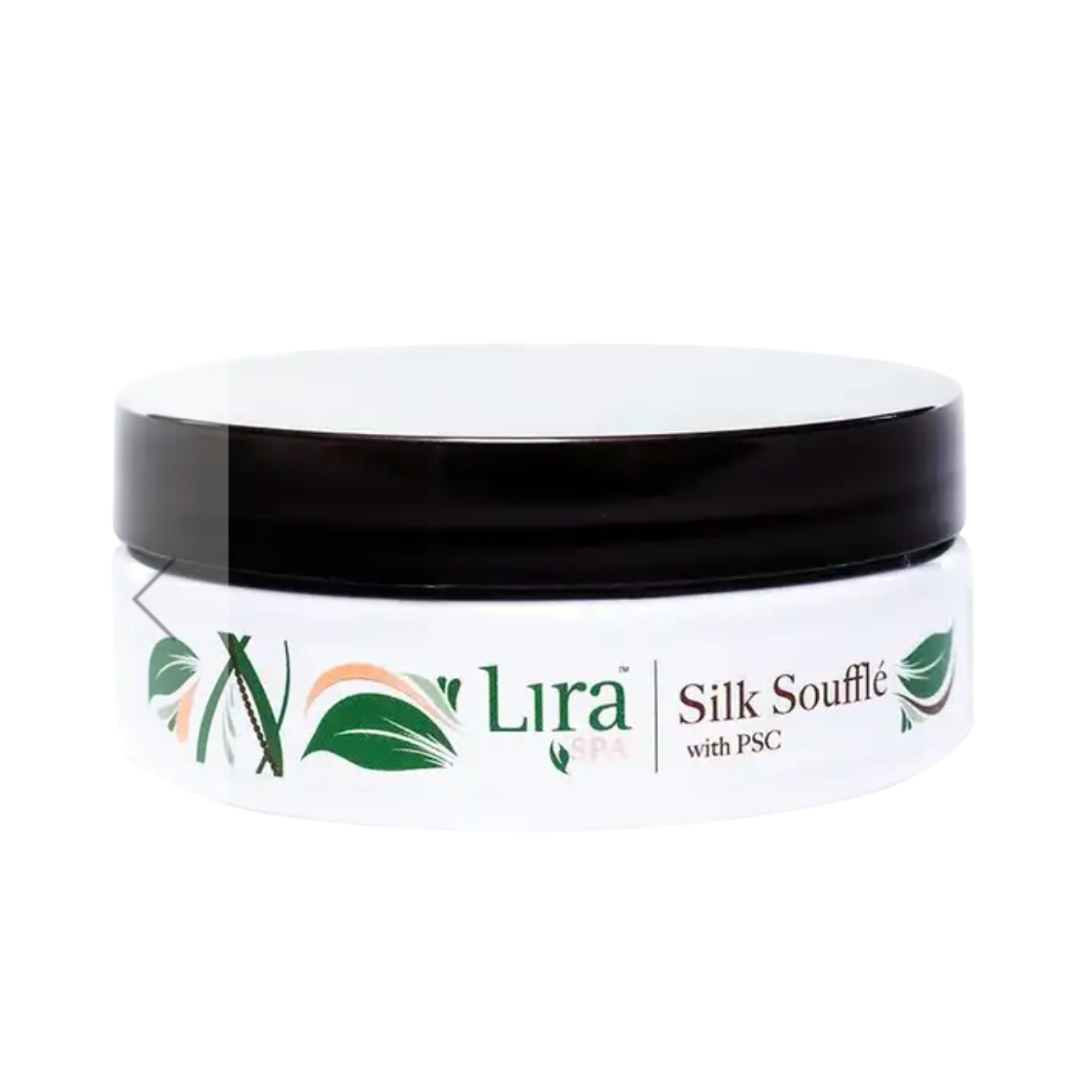 Regain supple smooth skin with the luxurious Silk Soufflé. This rich whipped body crème is infused with silk, skin nourishing vitamins and, botanical oils to restore and lock in moisture all day. Size: 6 oz